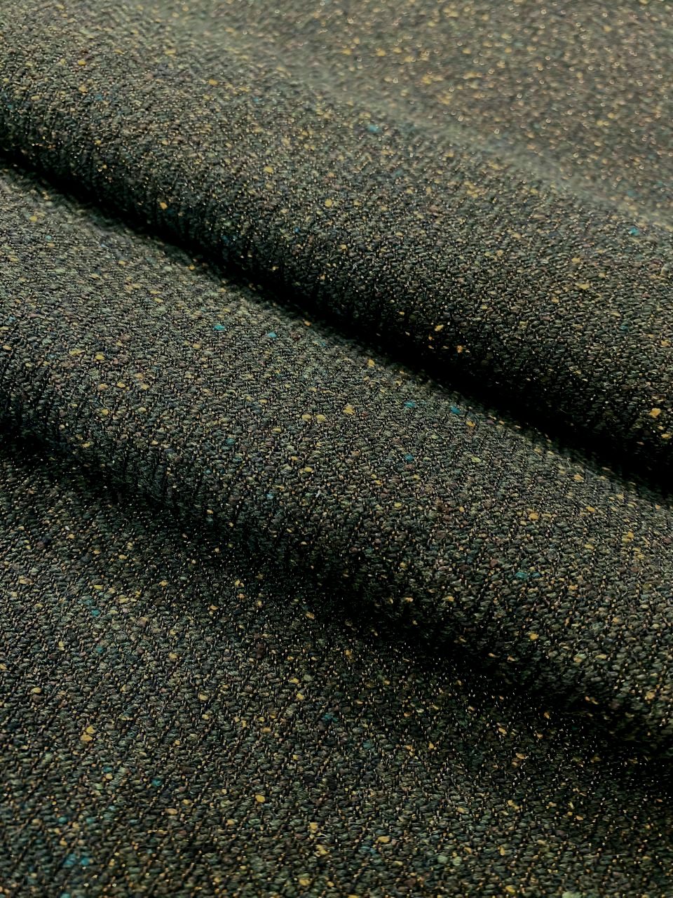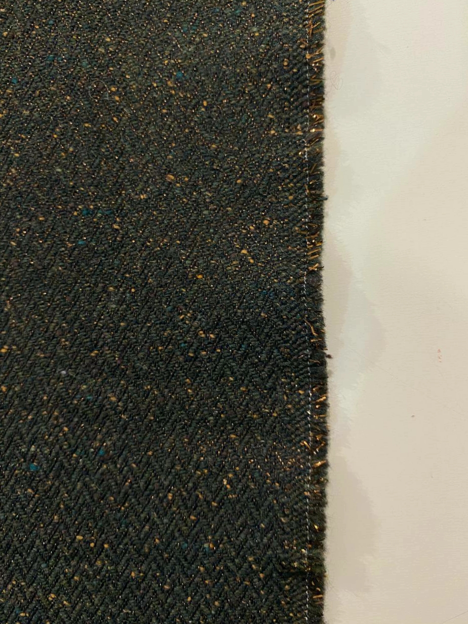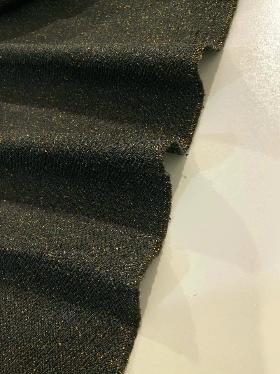 Ткань состоит из волокон различных цветов: черного, темно-зеленого и вкраплениями из песочных нитей.