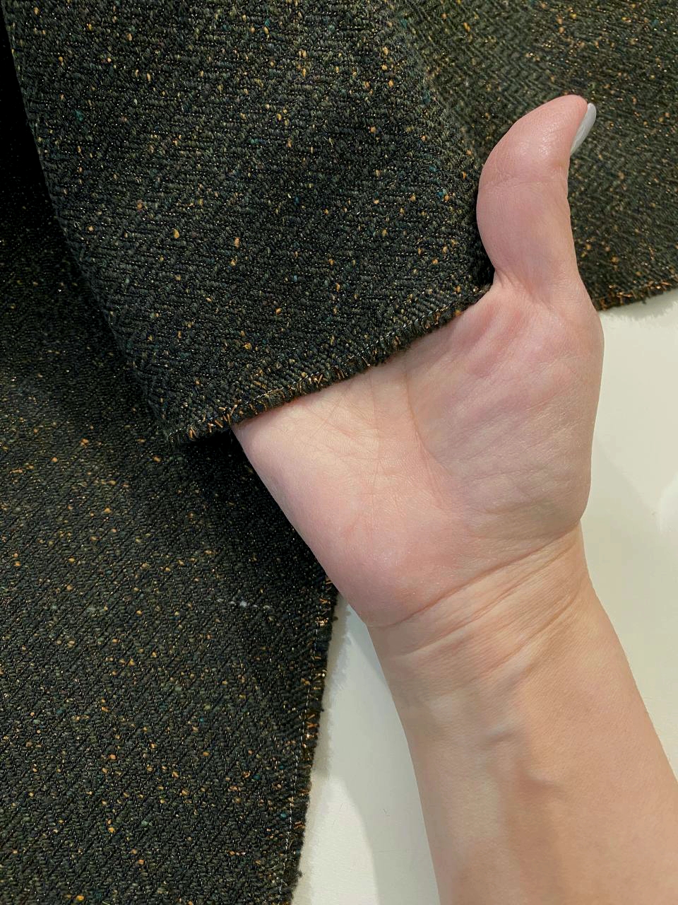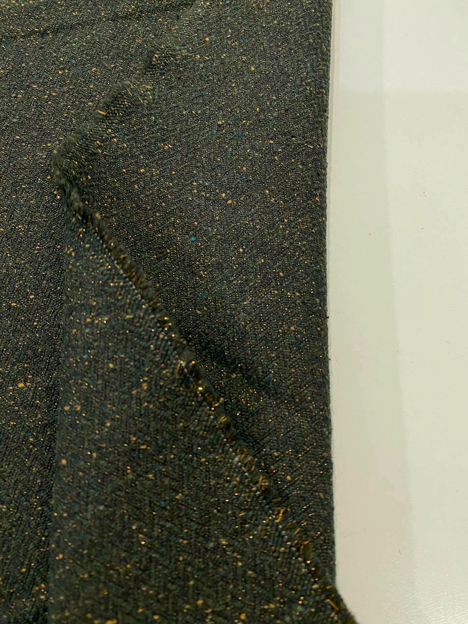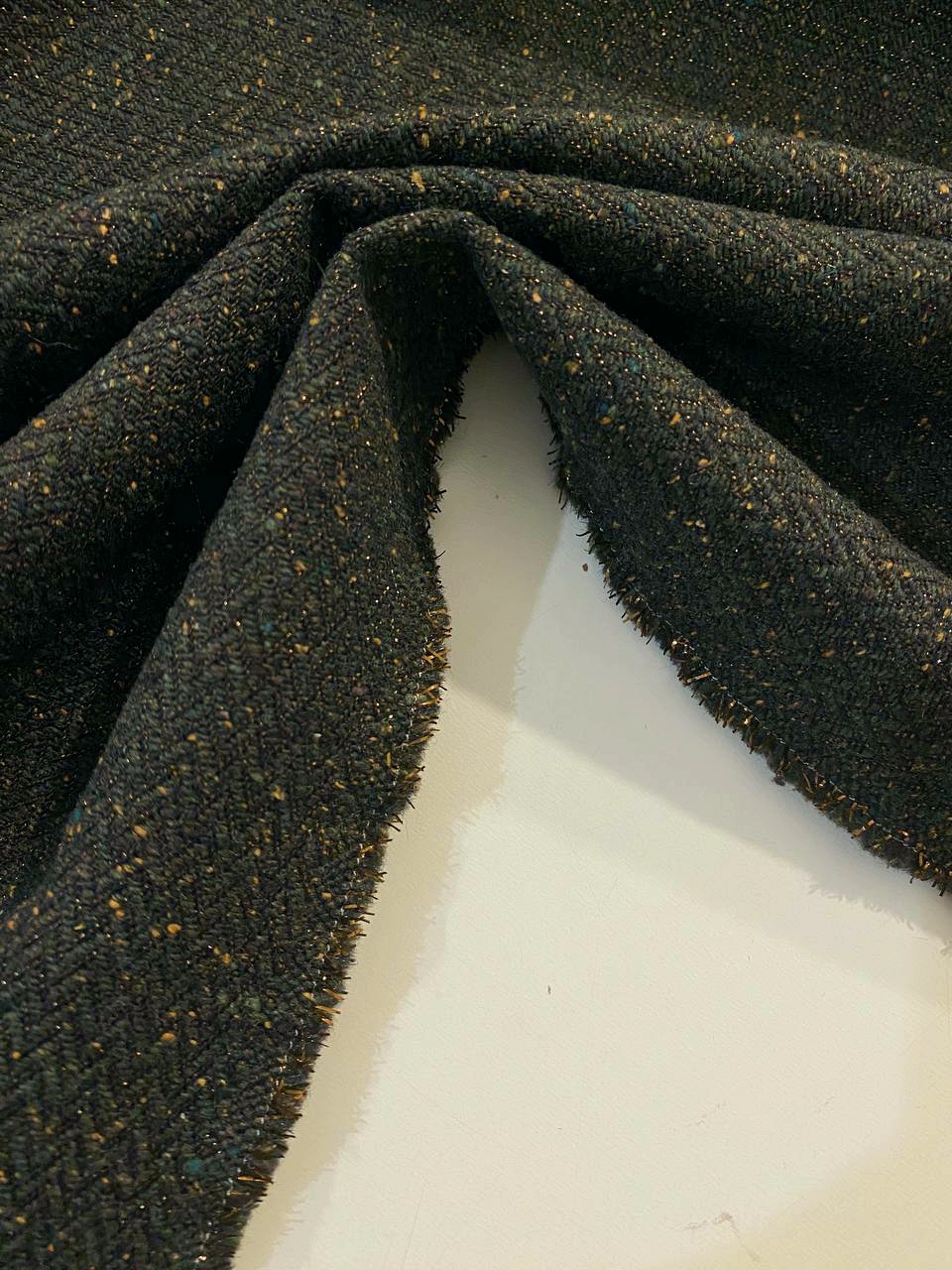 Ткань состоит из волокон различных цветов: черного, темно-зеленого и вкраплениями из песочных нитей.