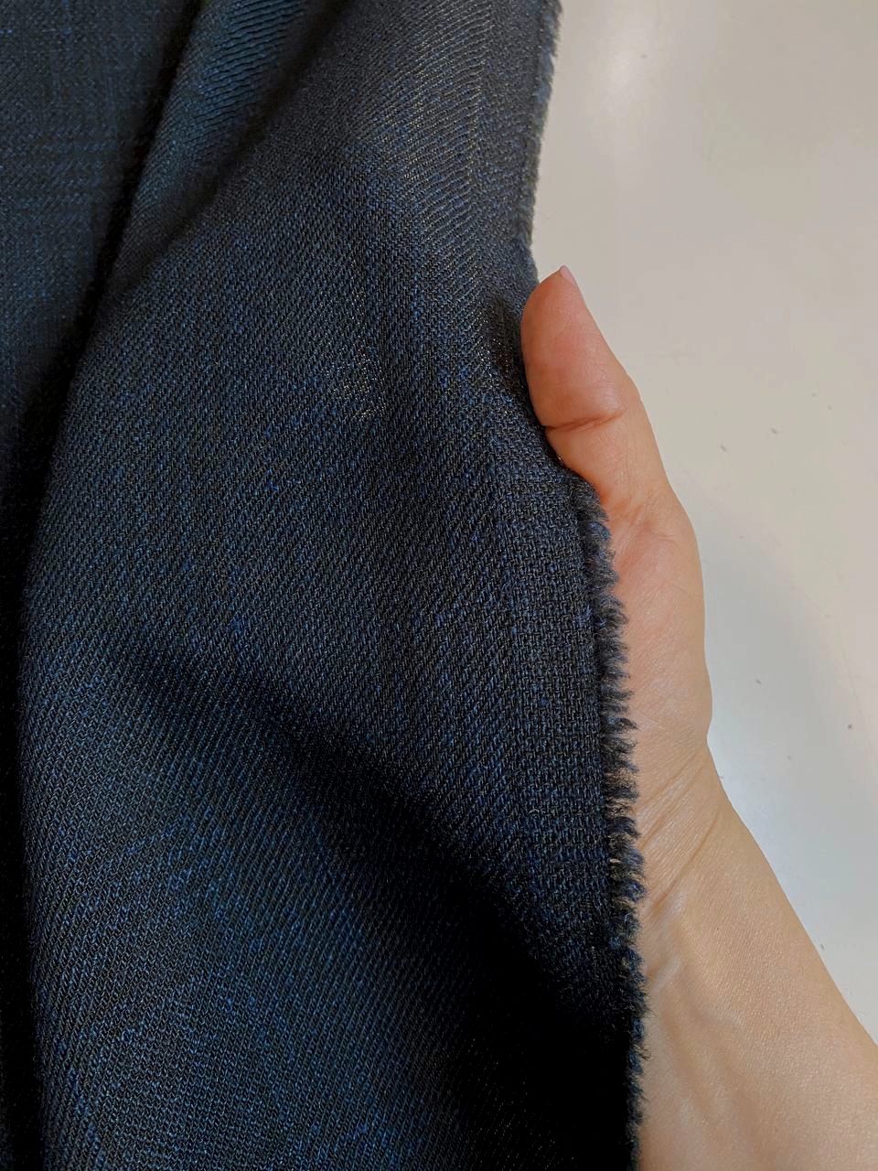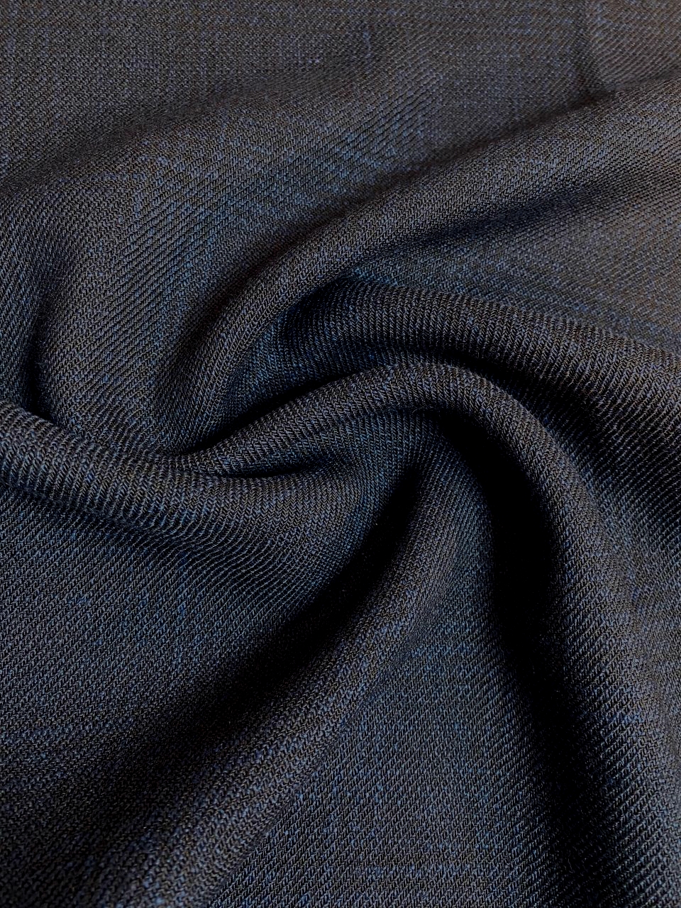 Ткань соткана из нитей двух цветов: черных и мало заметных нитей темной морской волны - цветовой эффект получился очень интересным!