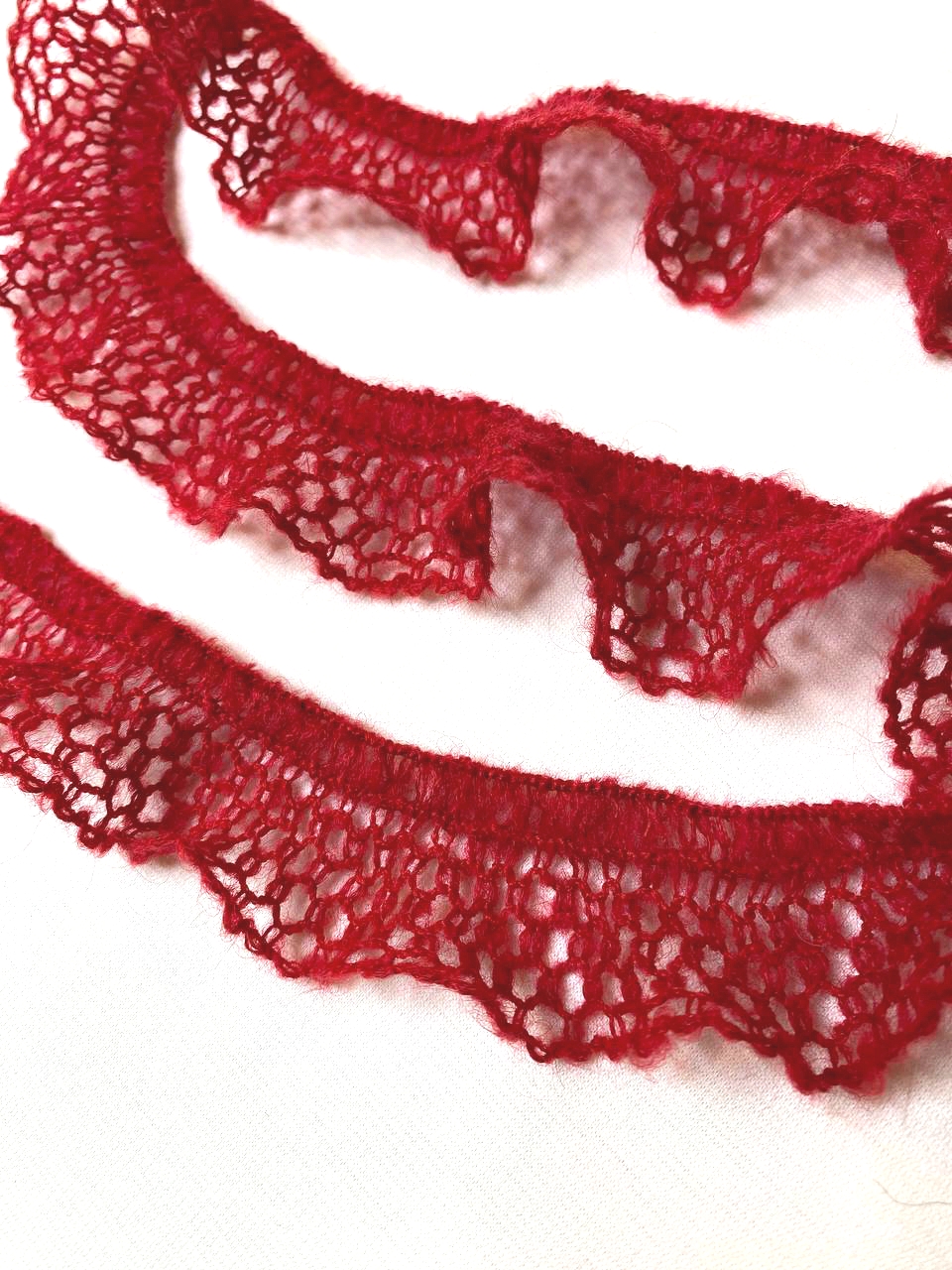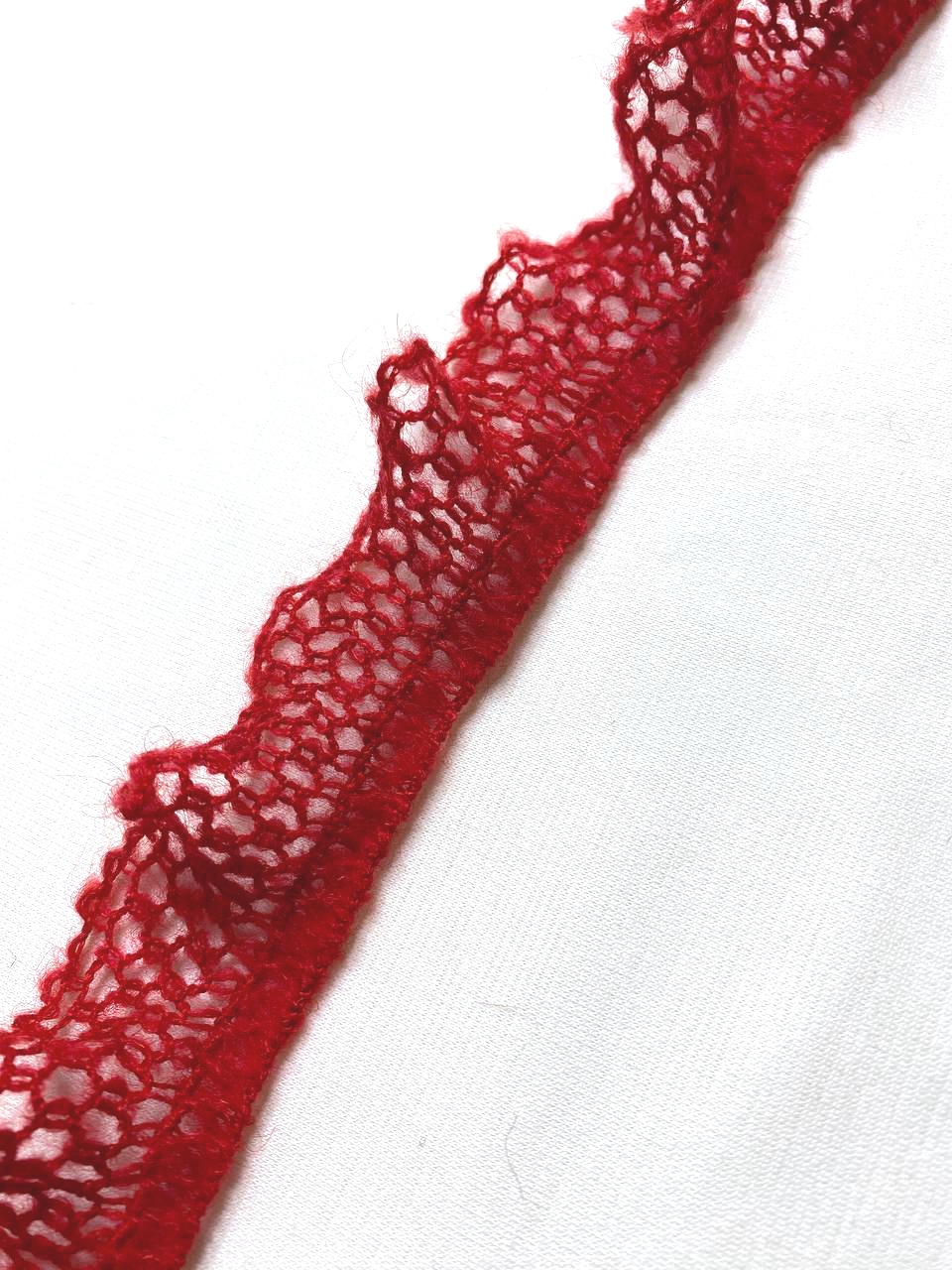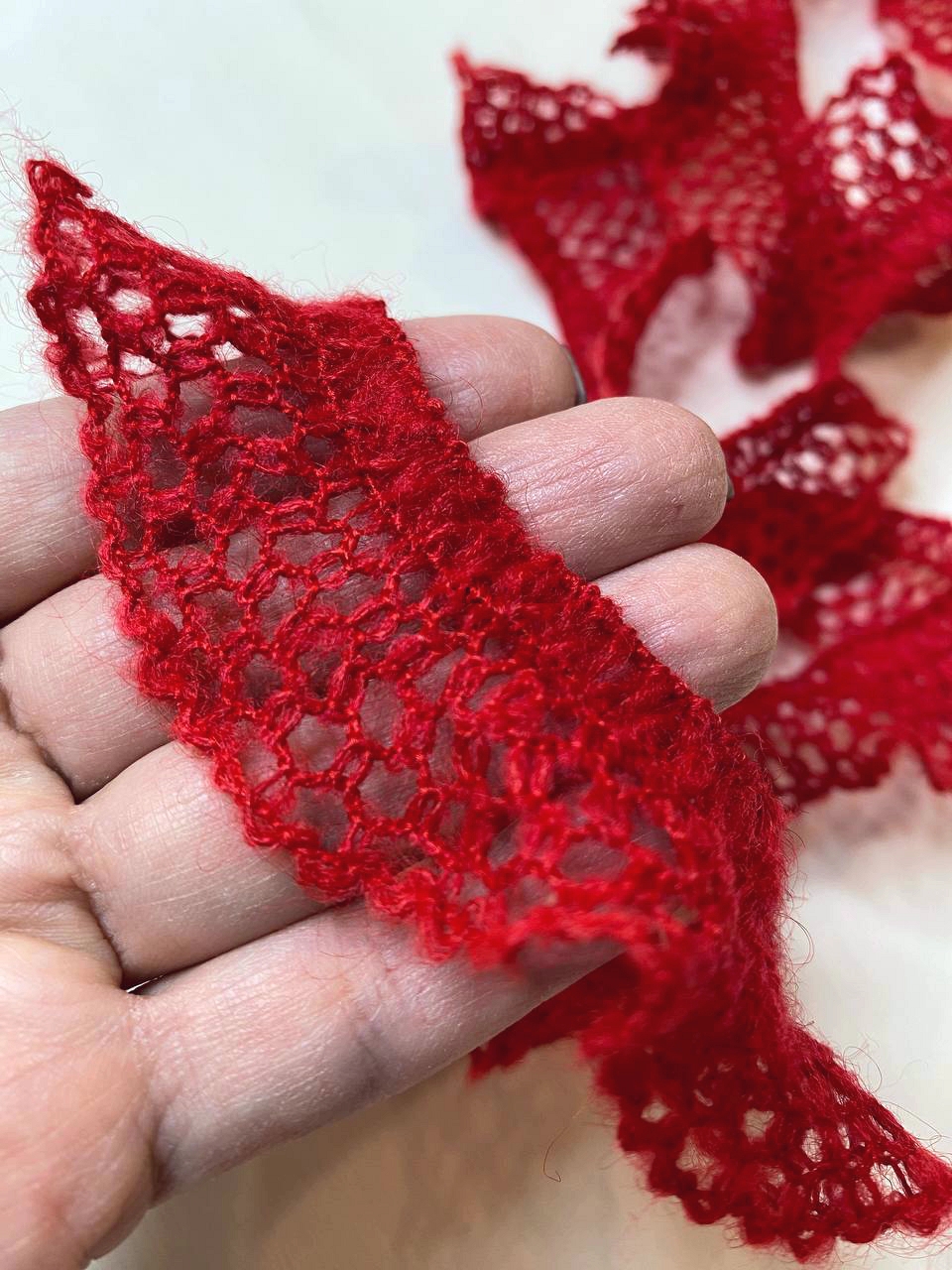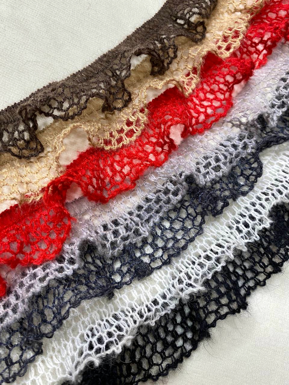 Кружево нежное, мягкое, с редким плетением. Нити кружева средней толщины, с небольшим ворсом.