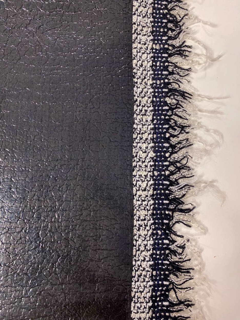 - основа (изнанка) из нитей полиэстера с добавлением шерсти, соткана из нитей меланжа.