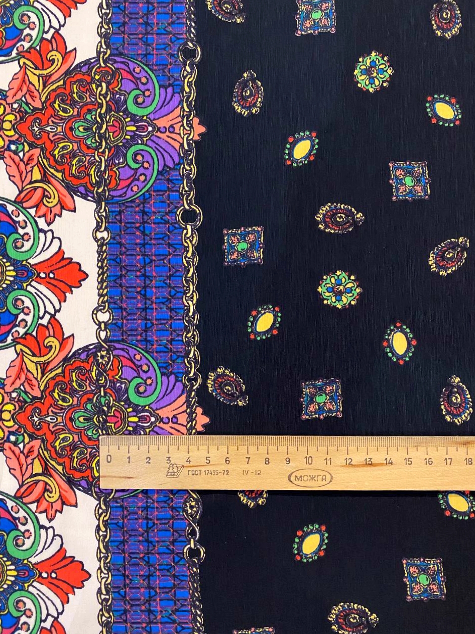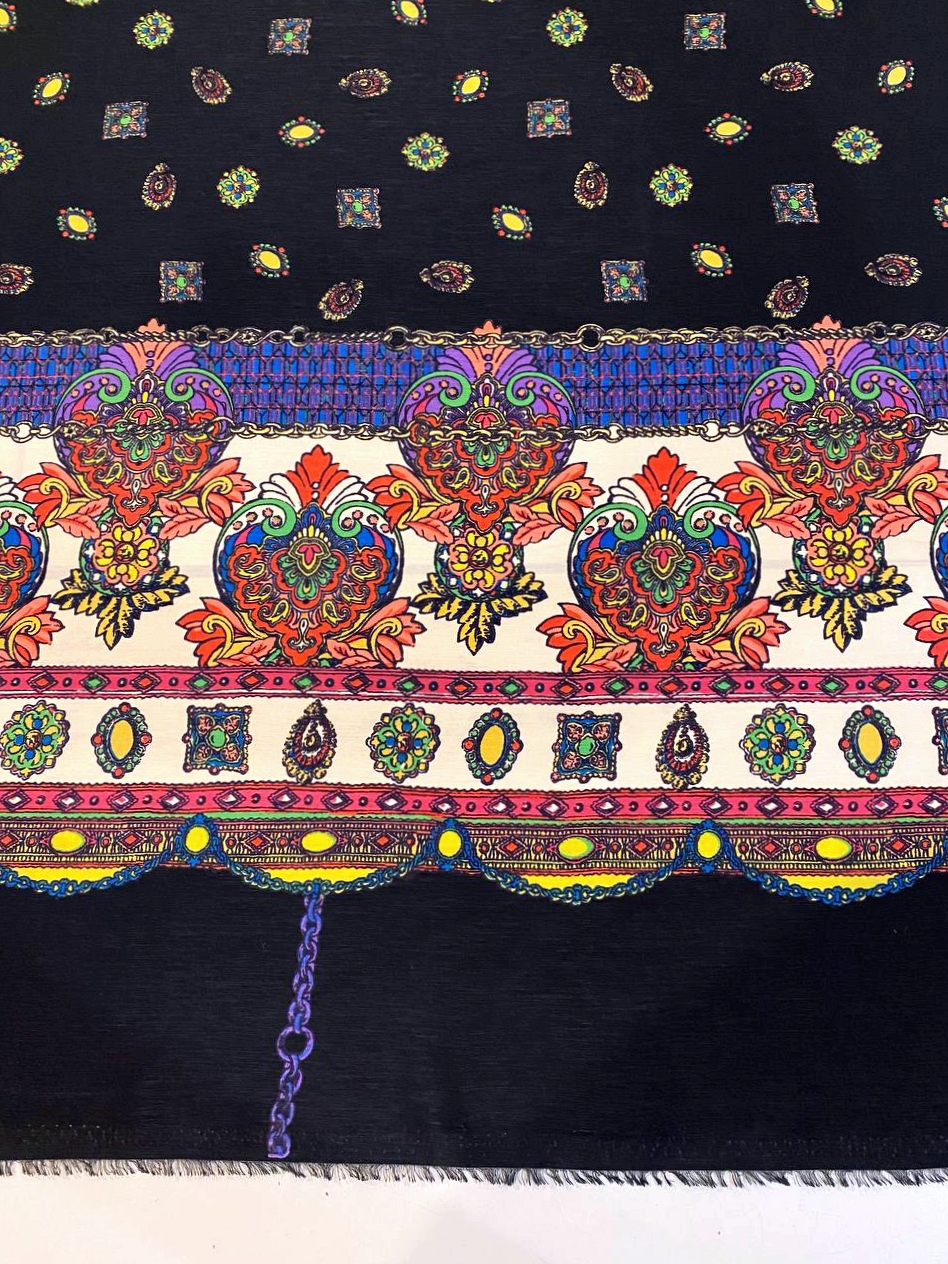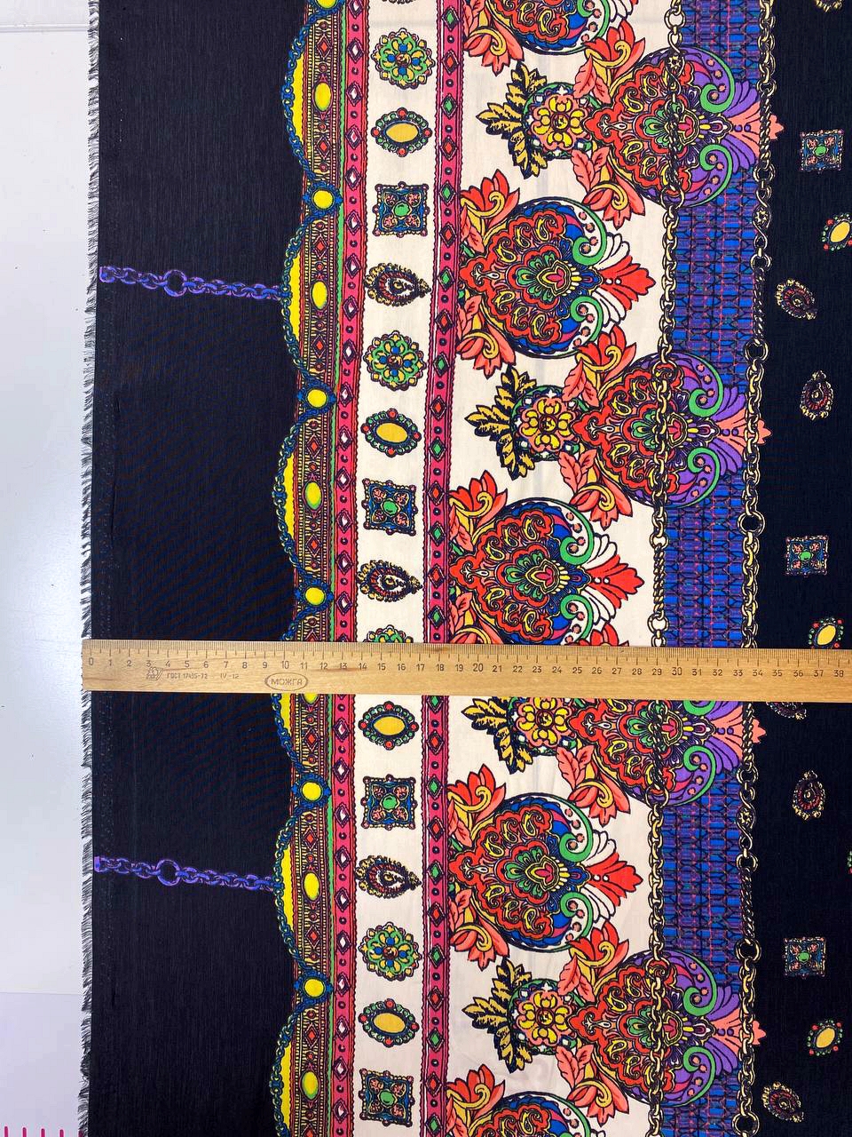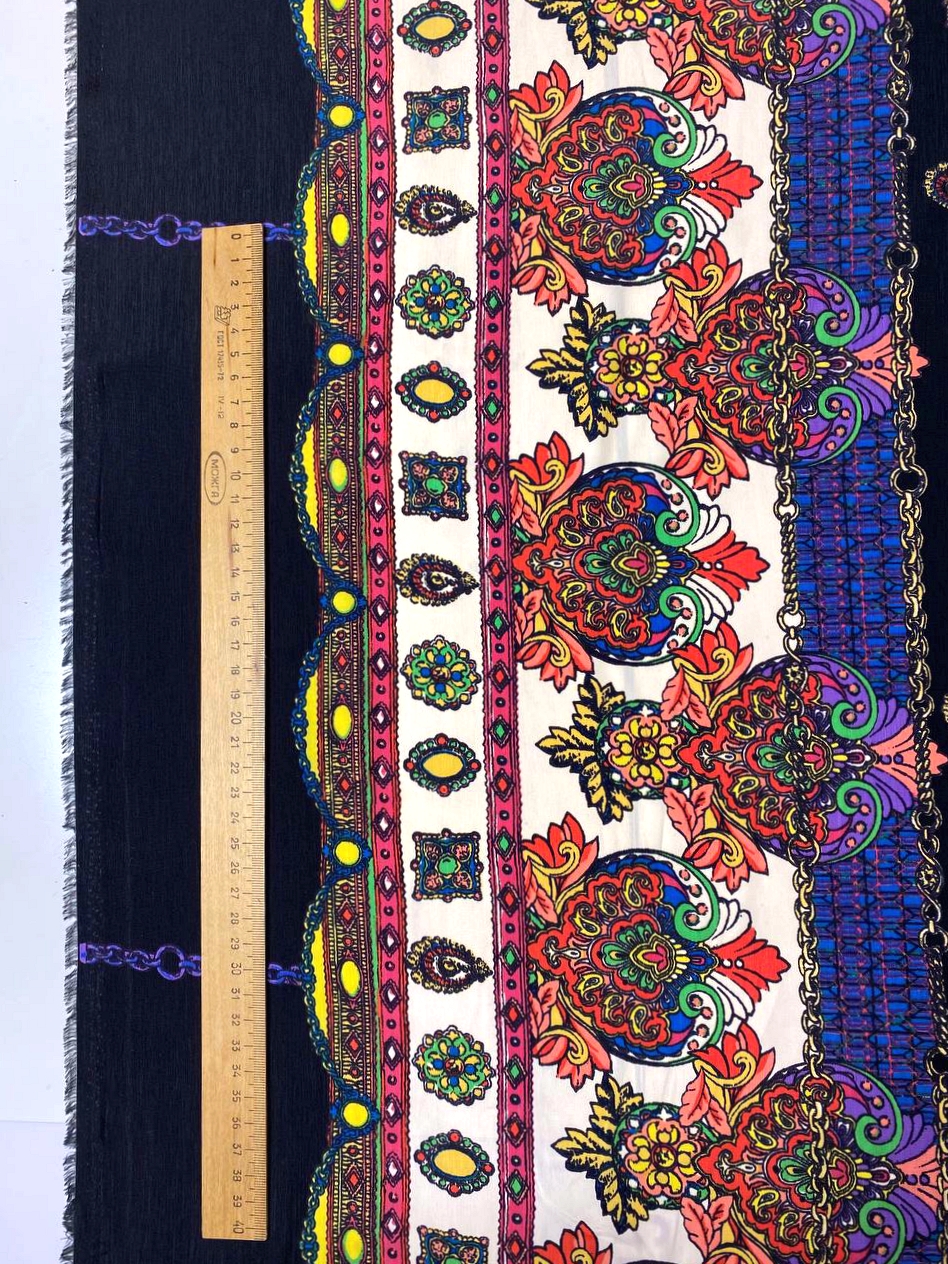 Роскошная ткань с двумя яркими бордюрами, расположенными вдоль обеих кромок.