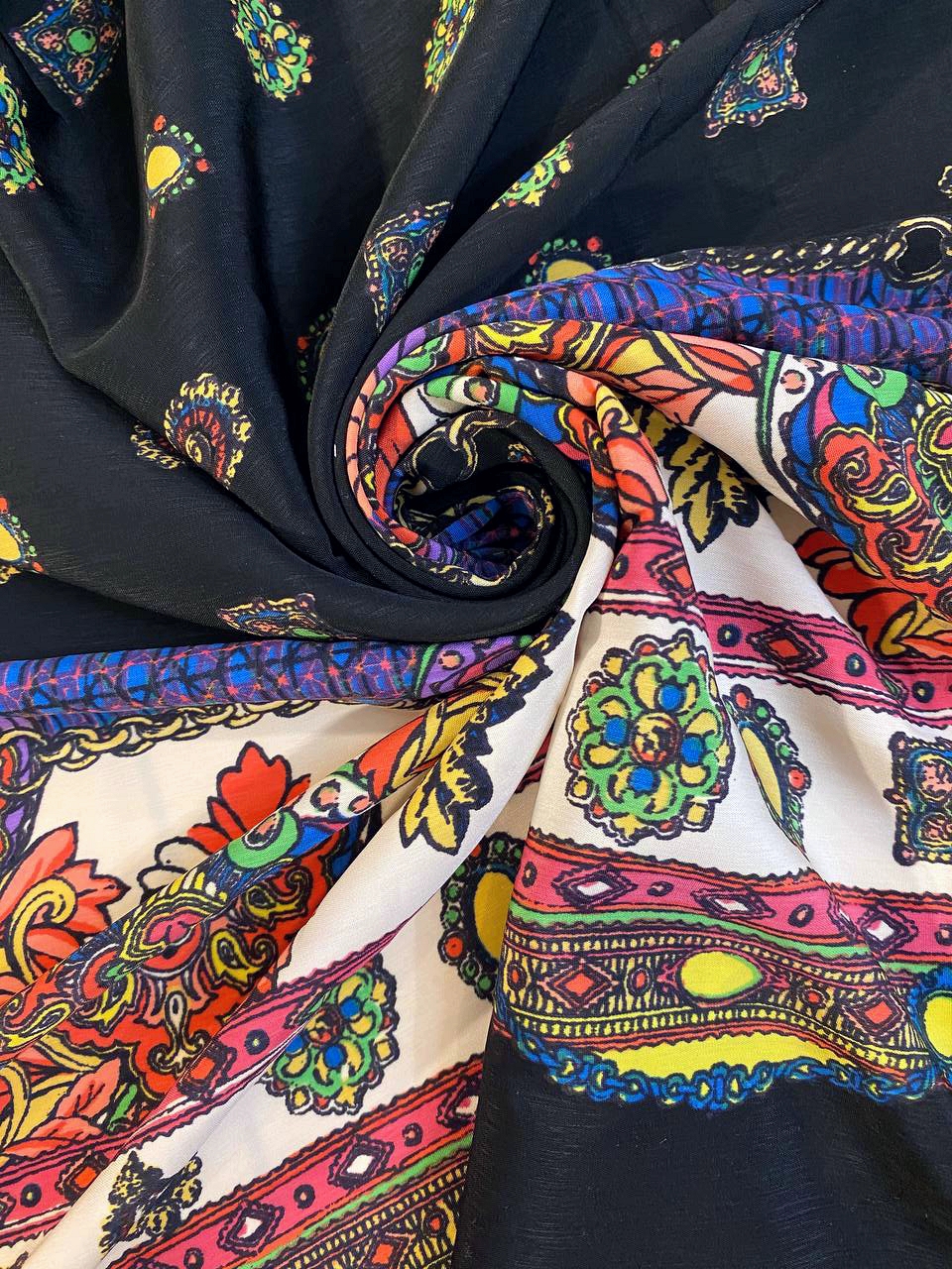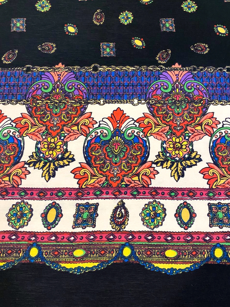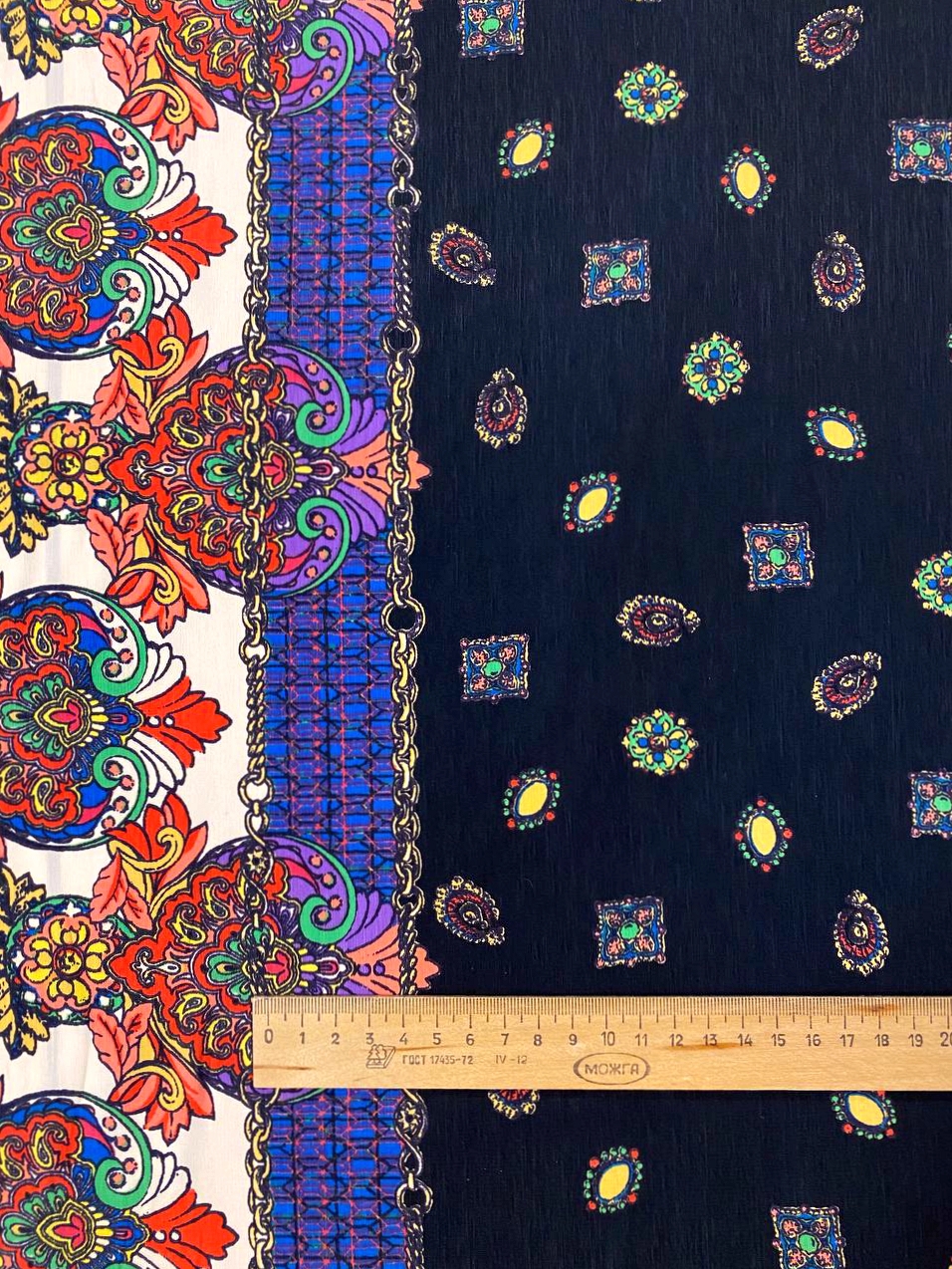 Роскошная ткань с двумя яркими бордюрами, расположенными вдоль обеих кромок.