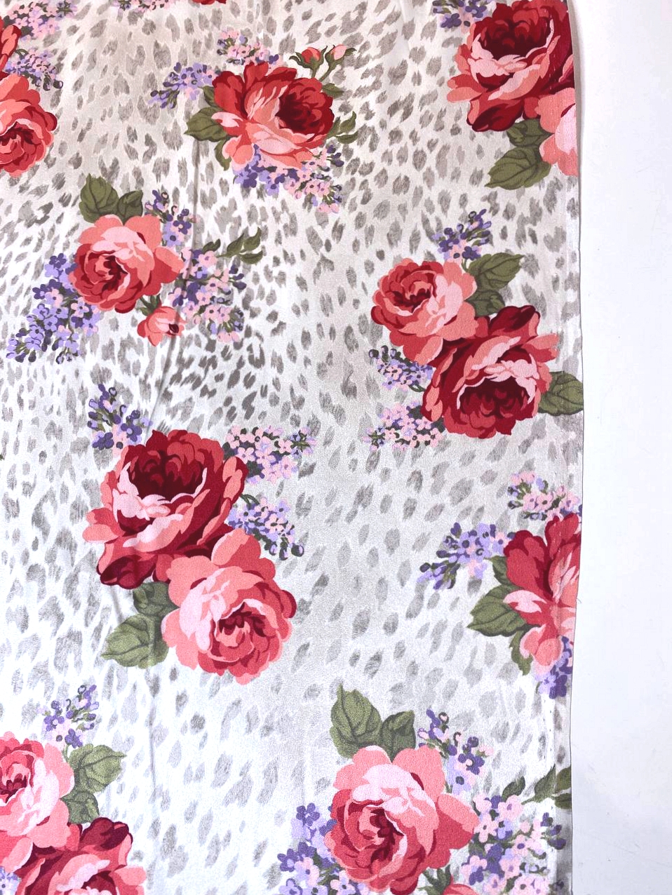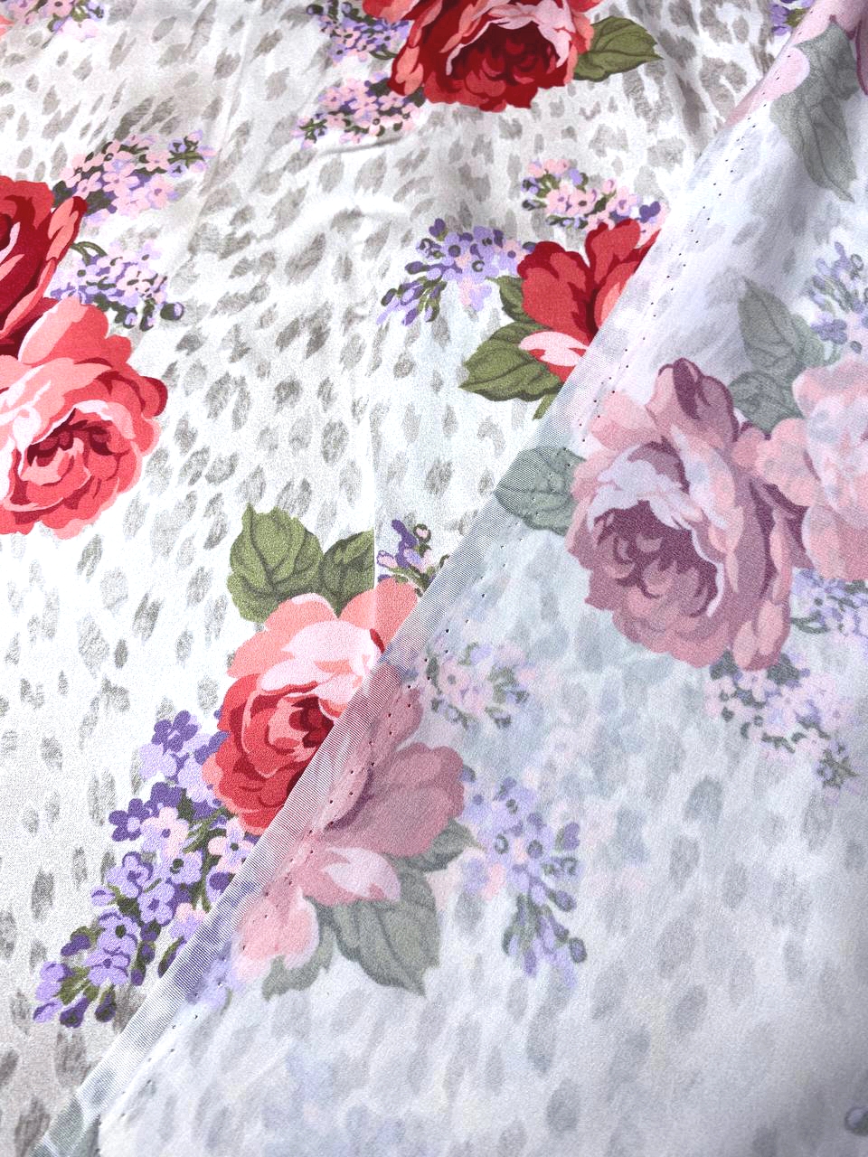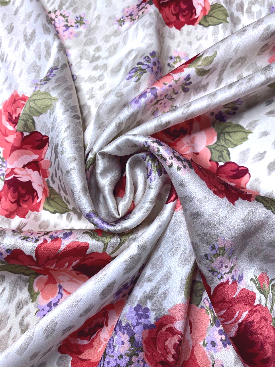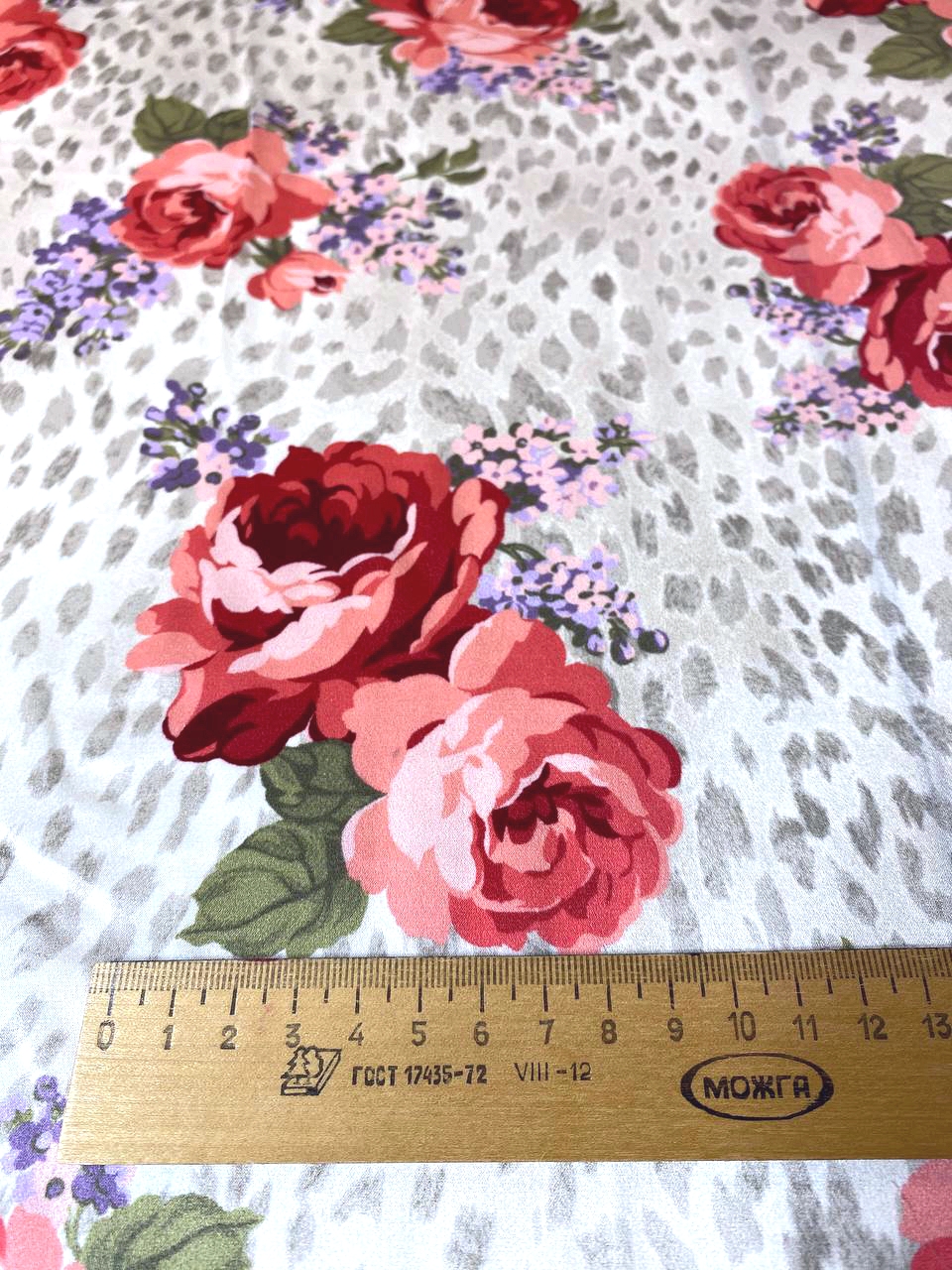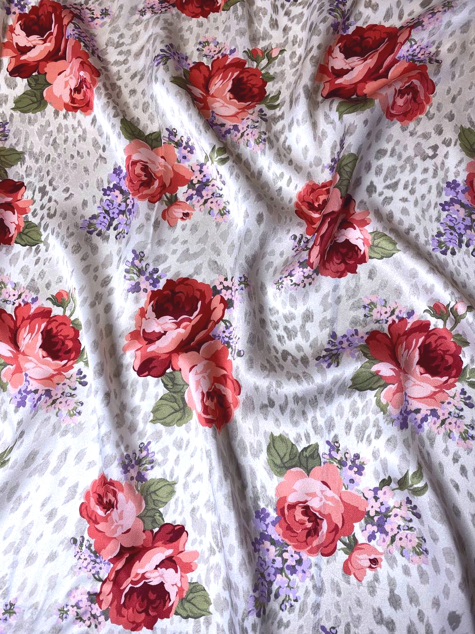 Эта ткань сочетает в себе два вида рисунков - цветочный и анималистичный.