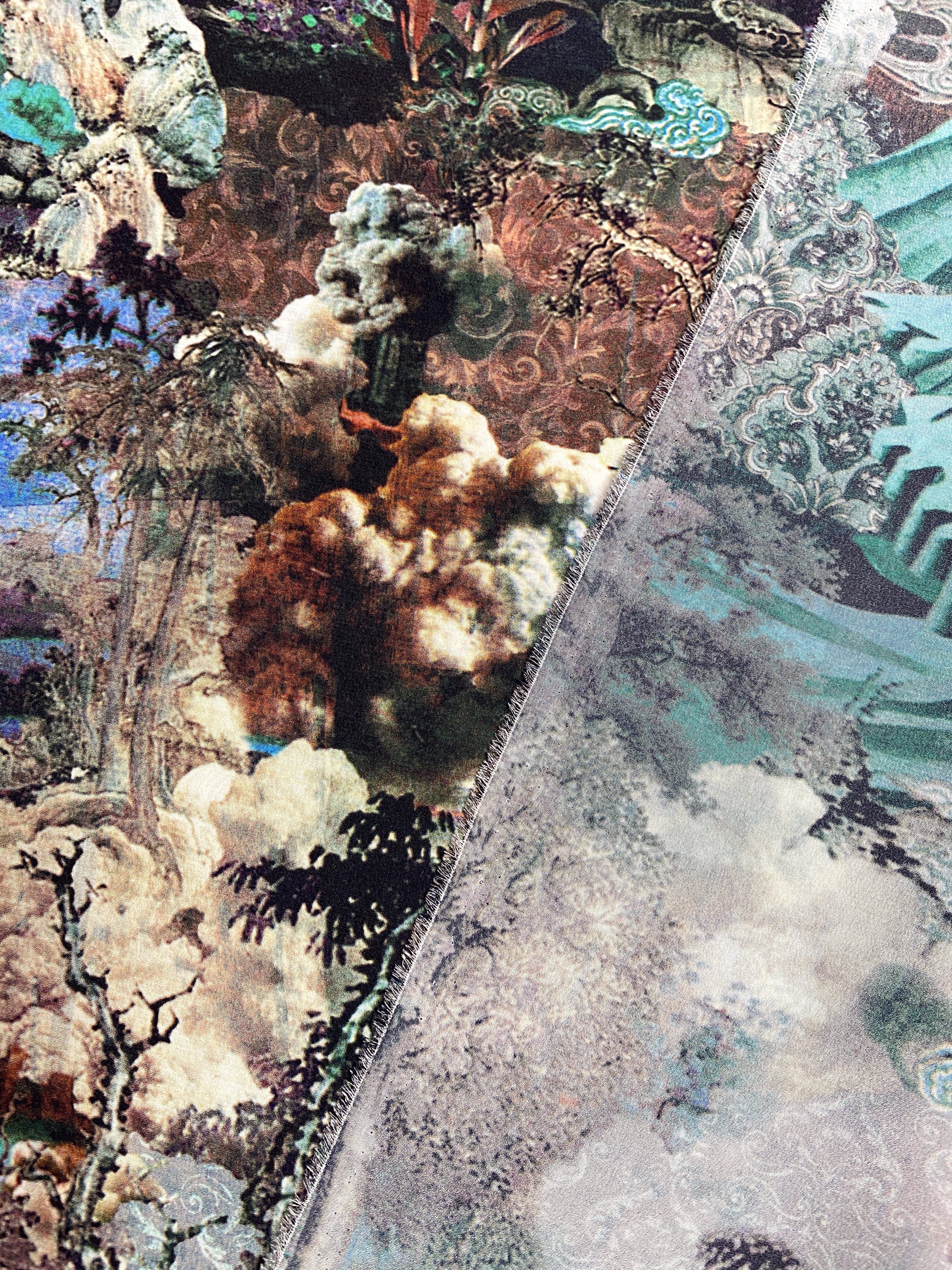 Шелк с матовой поверхностью, изнанка гладкая, шелковистая.