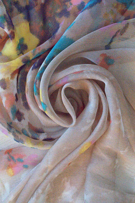 Ткань прекрасно подойдет для платьев с летящими юбками, для платьев с драпировками, а также для летних летящих юбок, туник, топов, шарфов, и для пляжной одежды.
