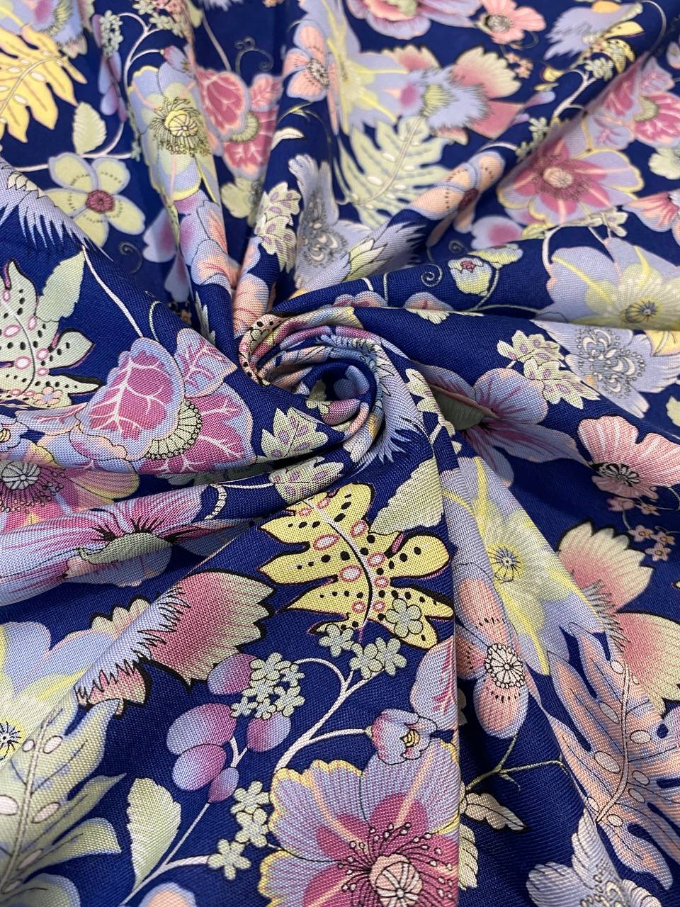Принт выполнен очень качественно: пропечатаны тонкие контуры цветов и листьев.