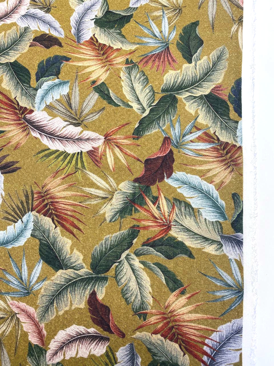 Основной фон сложного, но красивого цвета горчицы с добавлением оттенка хаки.