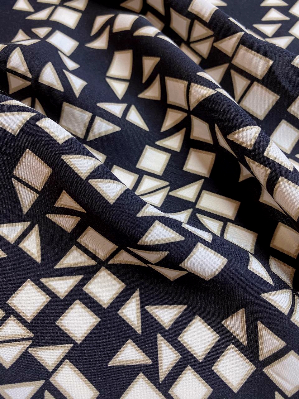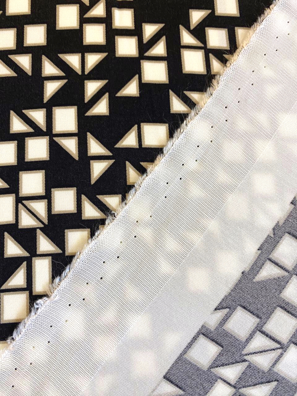 Принт выполнен в виде хаотично расположенных геометрических фигур, размер которых около 1см.