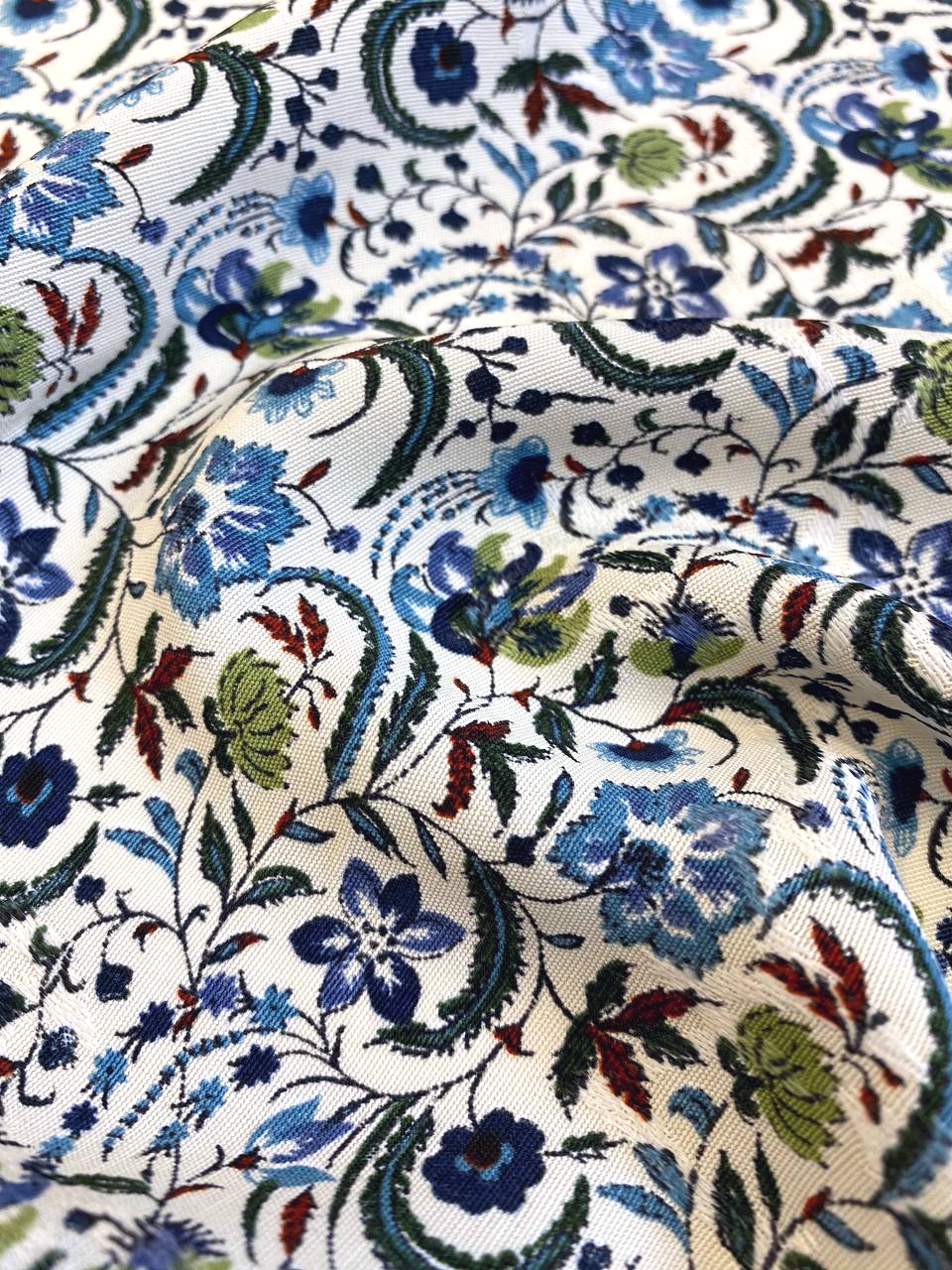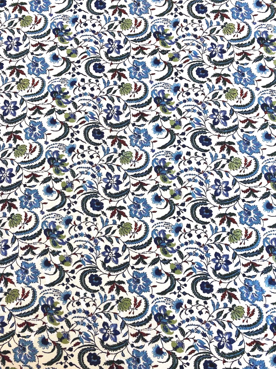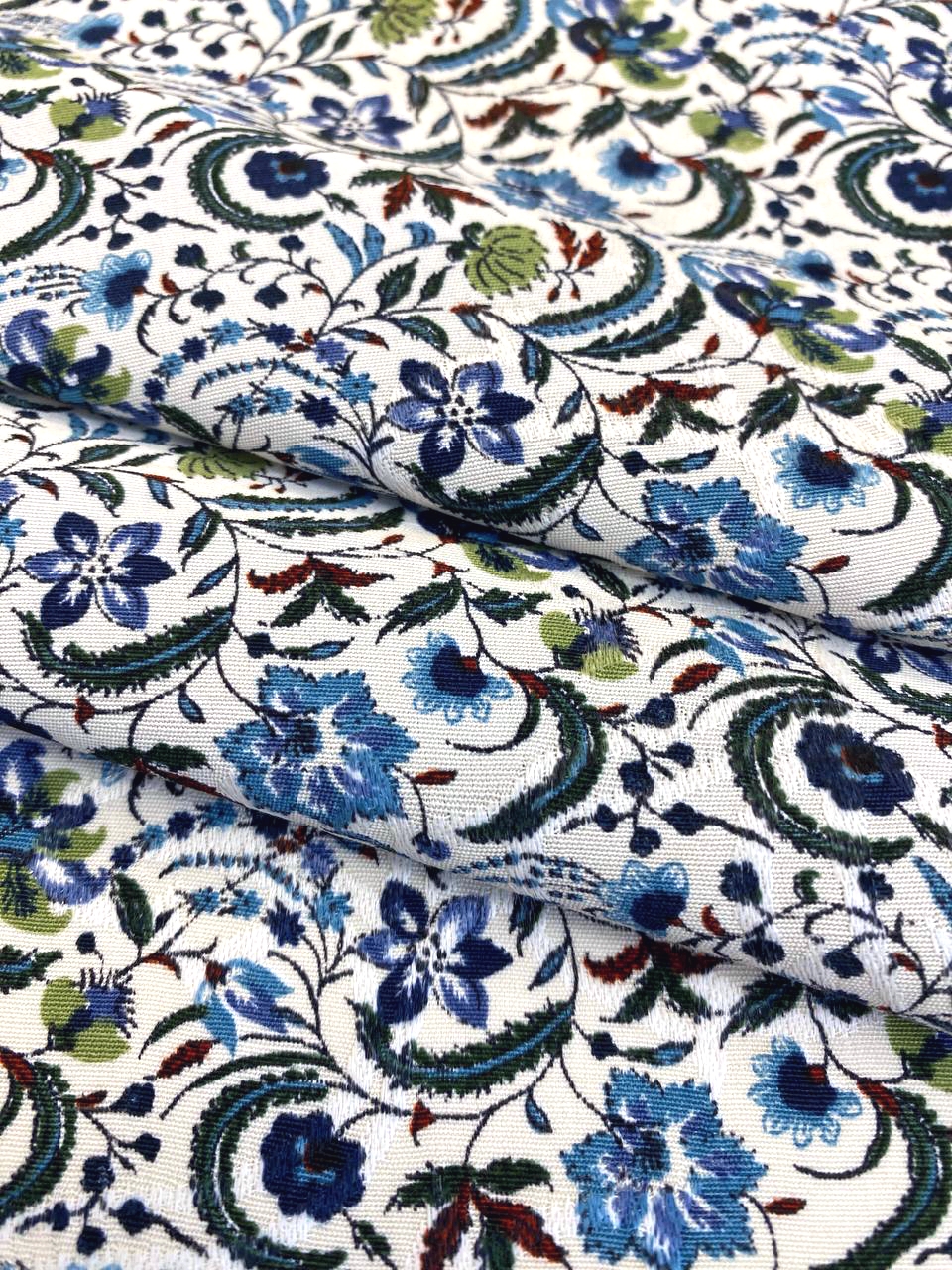 Основной фон сливочно - молочного цвета с россыпью мелких цветов.
