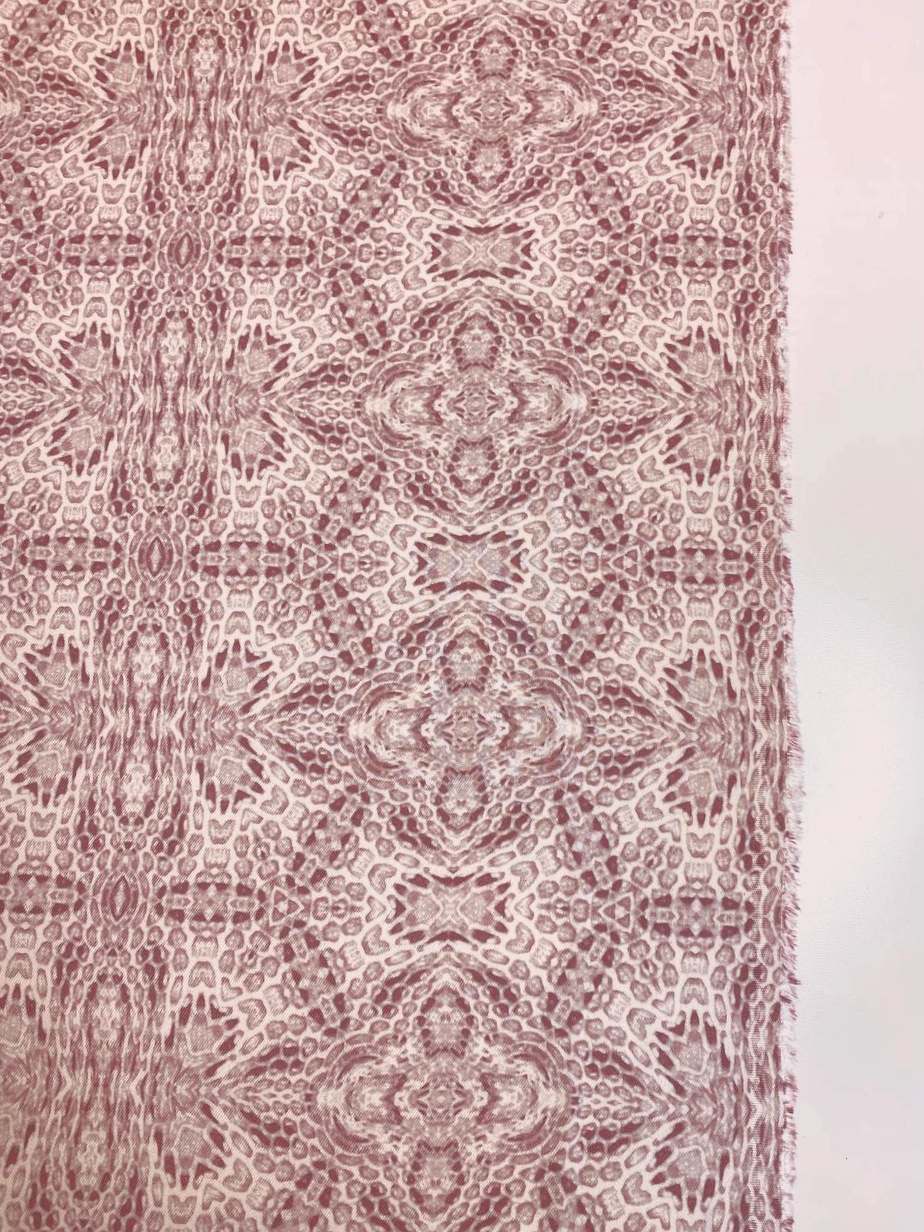 На нежном кремовом фоне нанесен узор розово-бордовых оттенков - сочетание цветов очень красивое.