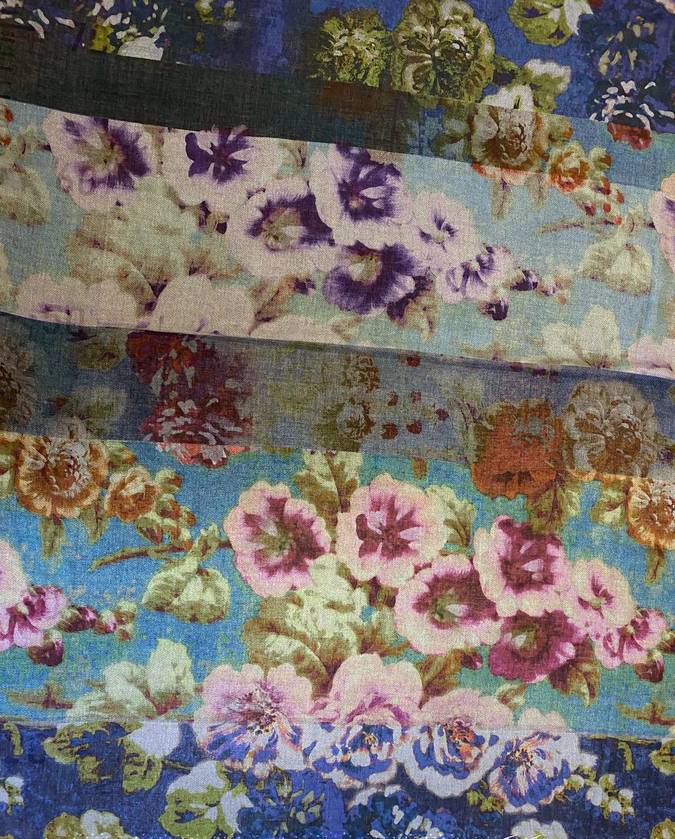 Эта роскошная вискоза с принтом в виде россыпи нежных цветов.