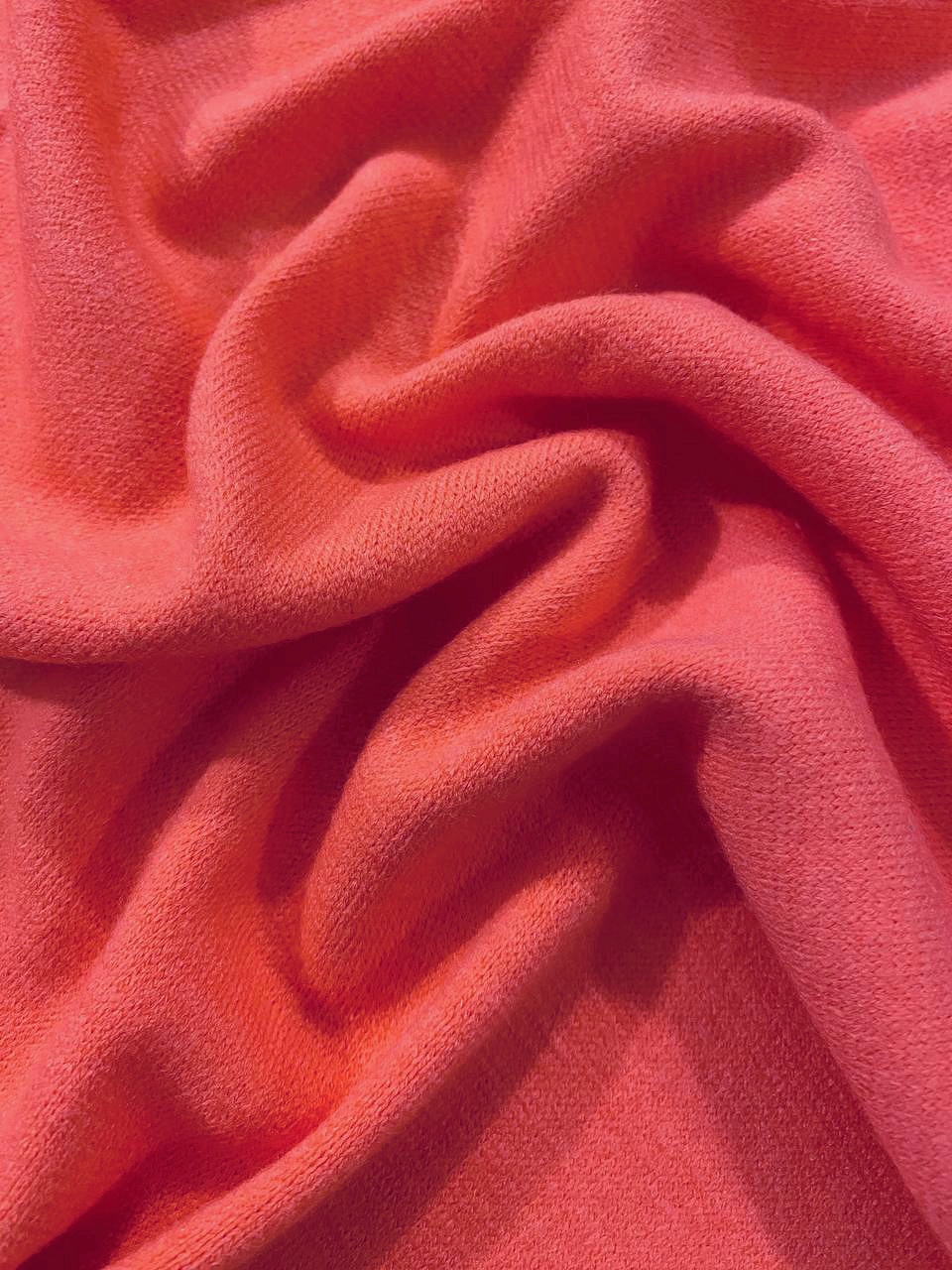Поверхность слегка ворсистая, с вязаной структурой. Трикотаж нежный, мягкий, пластичный, легкий, тактильно приятный.