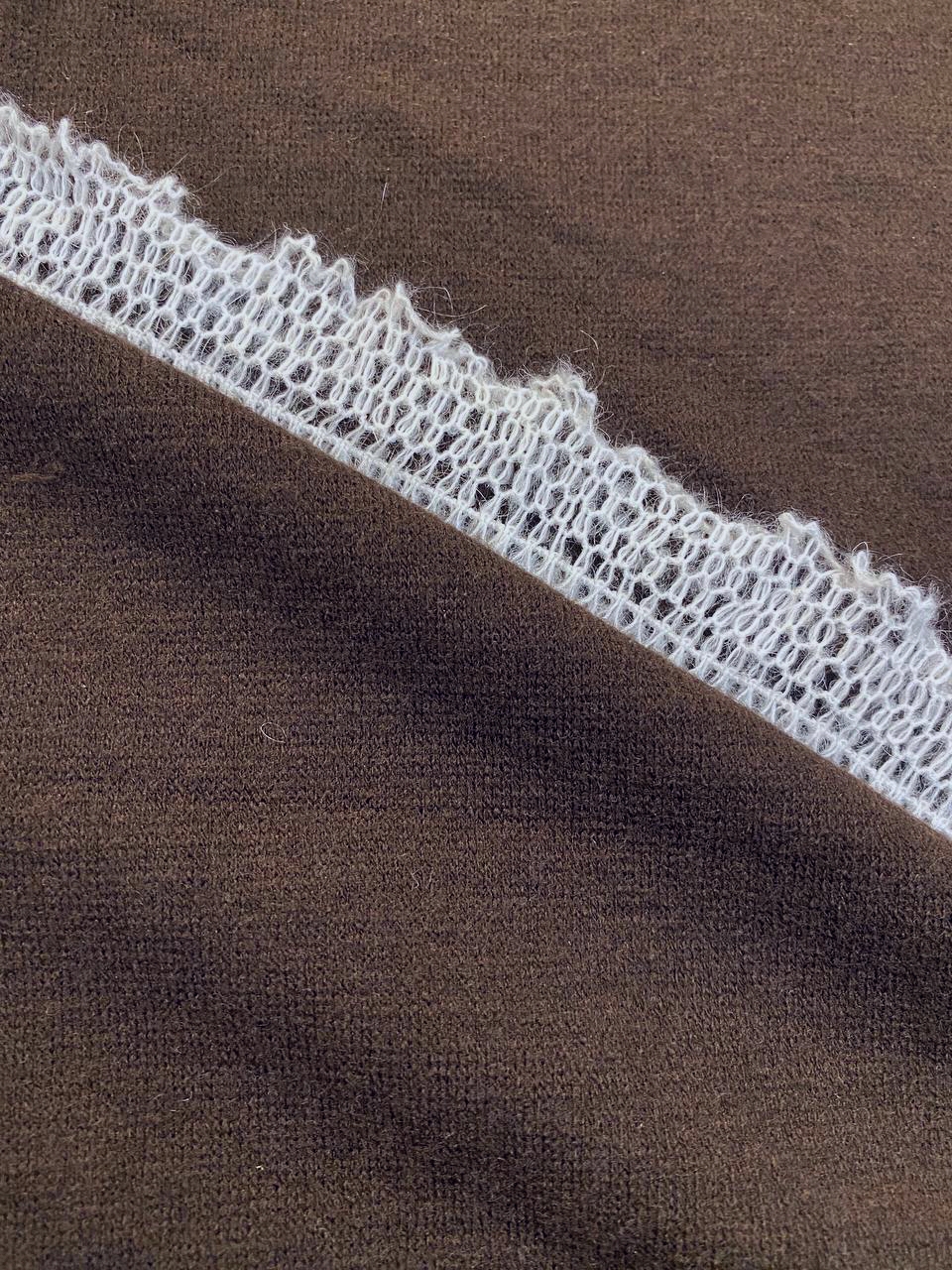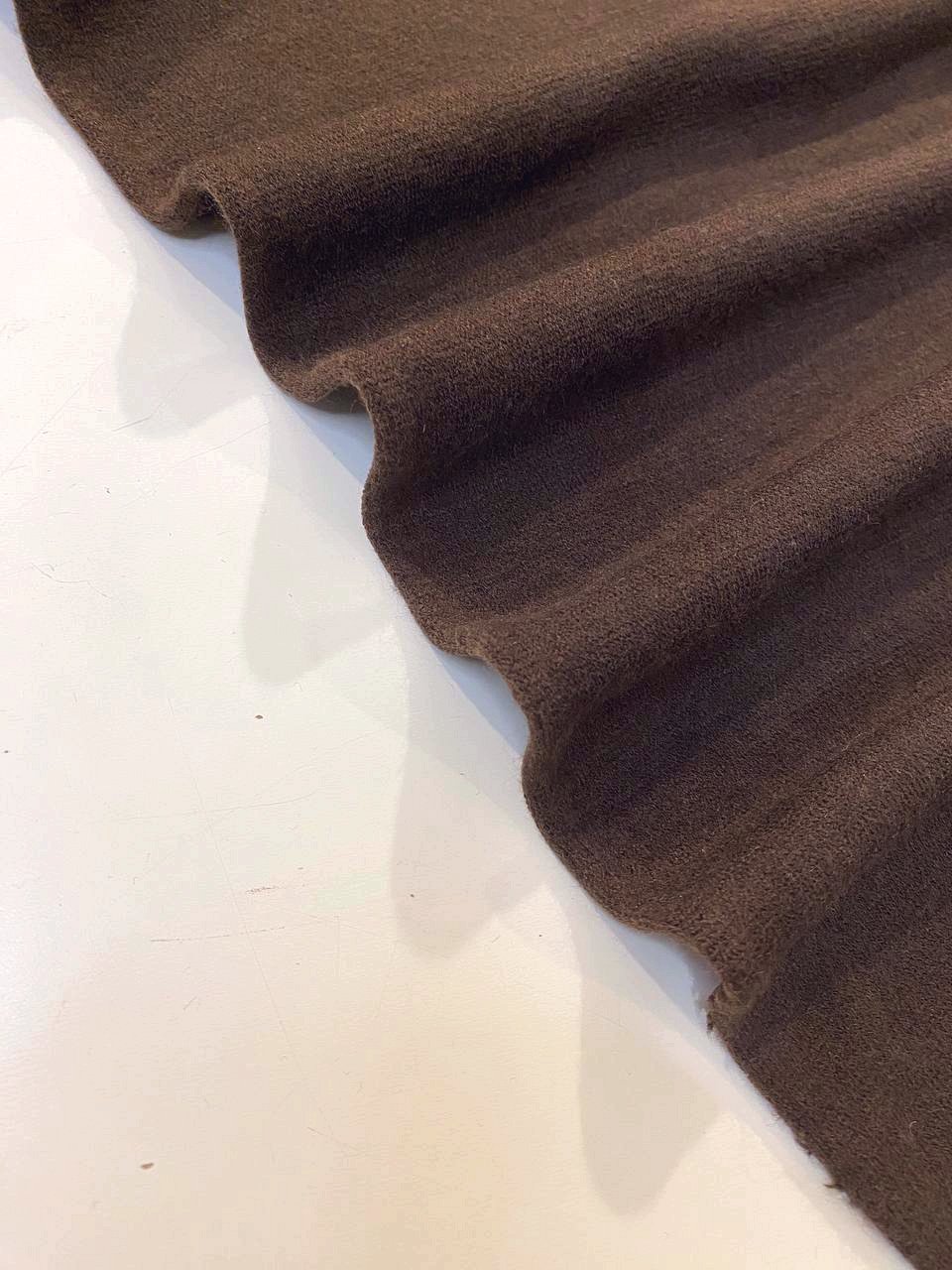 Поверхность слегка ворсистая, с вязаной структурой. Трикотаж нежный, мягкий, пластичный, легкий, тактильно приятный.
