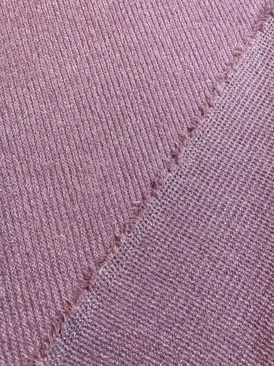 Трикотаж с выраженной меланжевой вязкой с добавлением нитей бледно - розового люрекса.