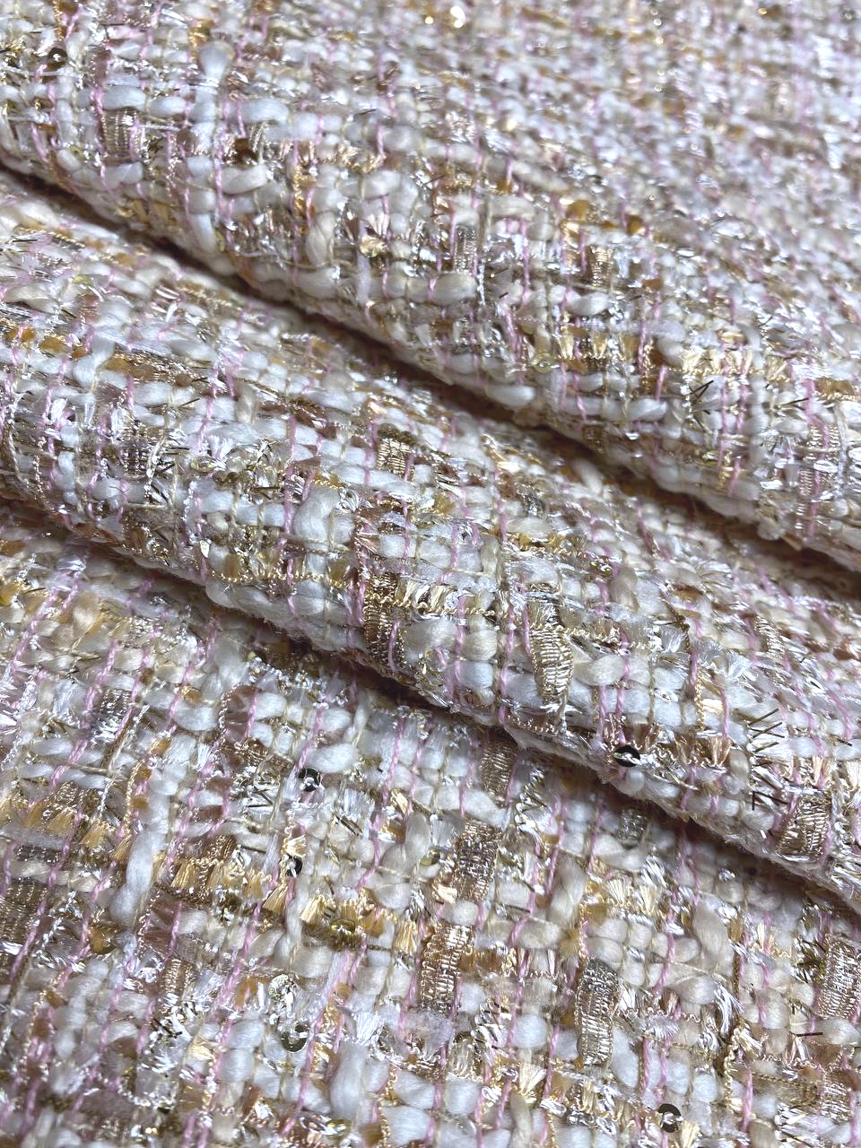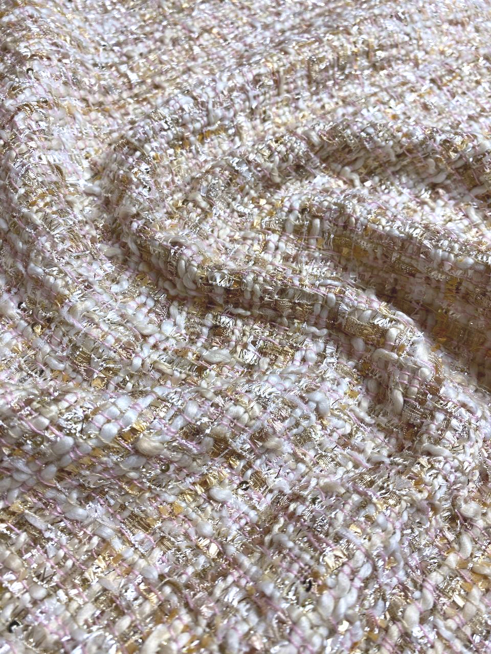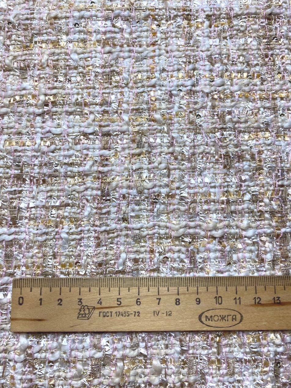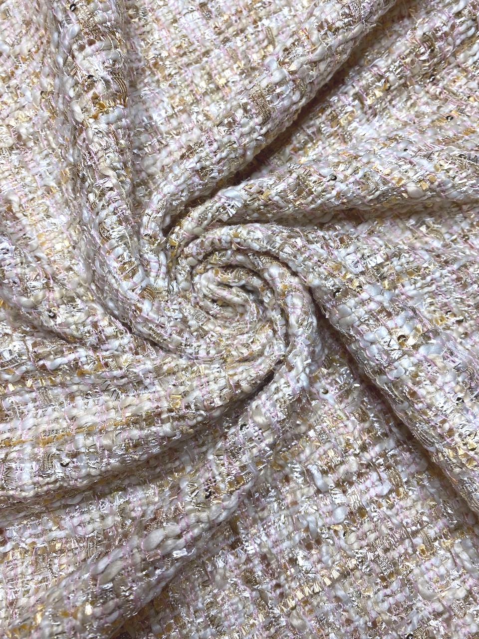 Ткань состоит из нитей различной толщины и структуры, так - же присутствуют нити золотистого люрекса.
