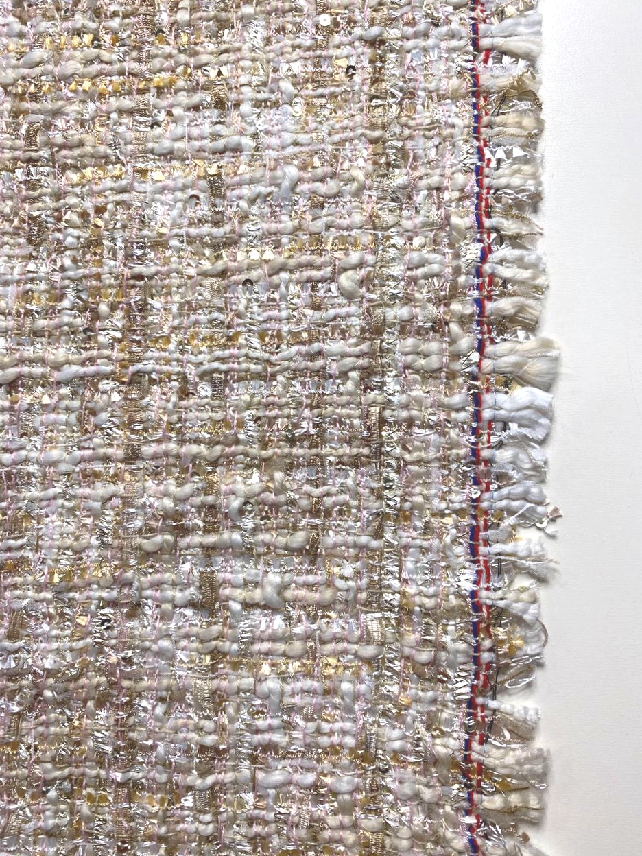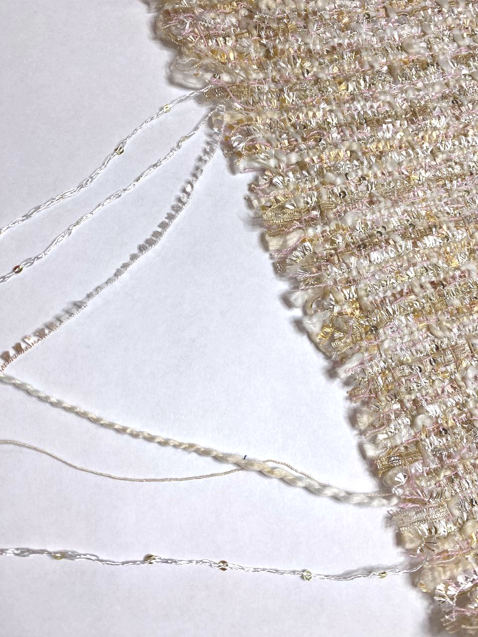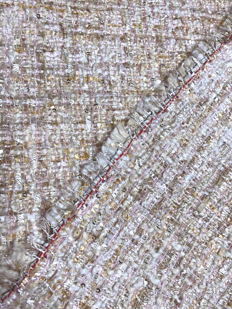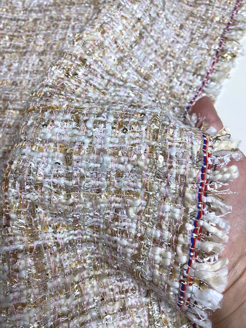 Ткань состоит из нитей различной толщины и структуры, так - же присутствуют нити золотистого люрекса.